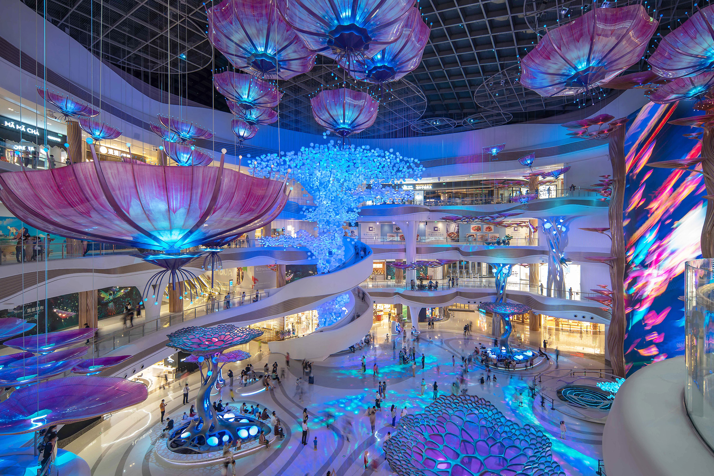 The project imagined the mall atrium as a fantastical world inspired by the natural landscape of Hainan. Erik wrote the visitor narrative and the animated story presented on a 29-metre interactive LED screen and the heart of the space