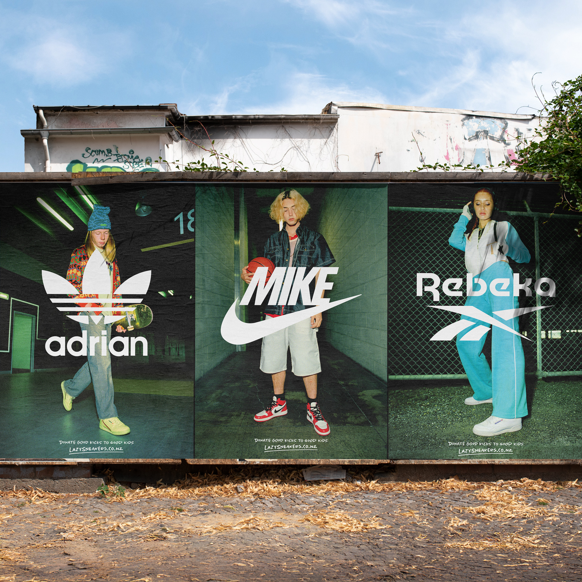 With a limited budget, the work focused on making noise. A series of posters co-opted the visual language of global sneaker brands. Shot on film and placed in high-traffic urban locations, the work read initially as premium sneaker advertising before revealing its purpose.